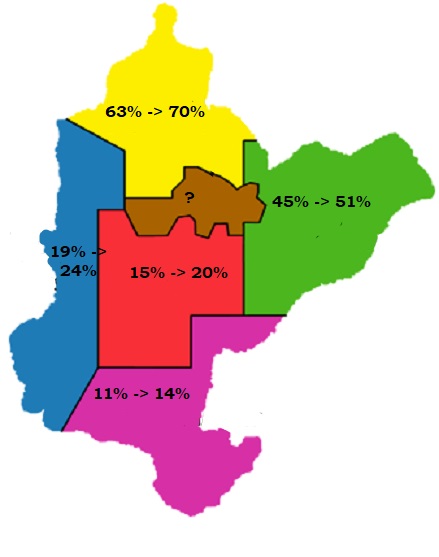 Mapa przedstawiająca postępy w islamizacji Wyspy Bialenii od rozpoczęcia akcji Dawahu. Największy wzrost liczby wyznawców zauważalny jest w "epicentrum" Zielonego Kościoła, a więc w Bialenii Północnej. Im dalej na południe, tym sytuacja robi się bardziej skomplikowana. Choć postępy koranizacyjne są znaczne i stosunkowo szybkie, dla wszystkich musi być jasne, że pomimo akcji Dawahu Bialenia pozostanie państwem wieloreligijnym i wielokulturowym. Co ważne, Dawah powstrzymał procesy ateizacyjne w bialeńskim społeczeństwie, zagospodarował też niszę religijną, którą w przeszłości usiłowali zająć m.in. rotryści (co wpływało negatywnie na unikatowość kultury bialeńskiej).