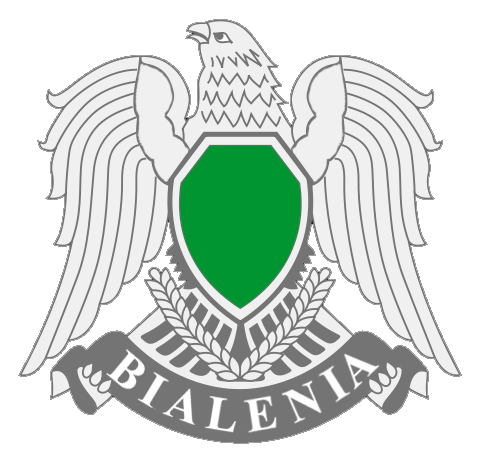 a) Godło w postaci wizerunku srebrnego Sokoła Kurajszytów, na piersi którego znajduje się zielona, pięciokątna tarcza, pod którą umieszczony jest wieniec złożony z dwóch kłosów pszenicy srebrny. W szponach Sokoła znajduje się szara wstęga z napisem „BIALENIA”;